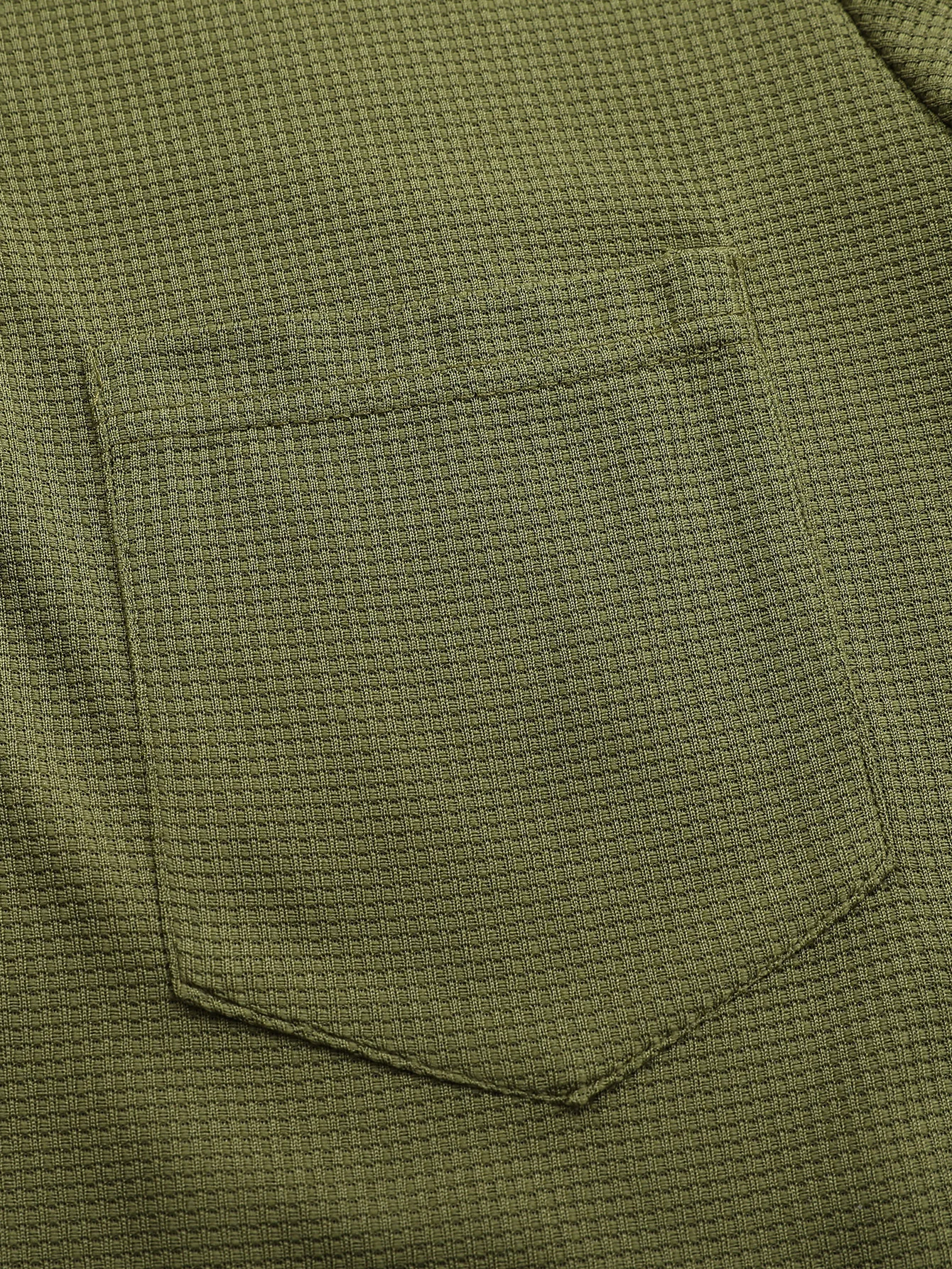 Button Henley Neck Long Sleeve Casual Waffle Cotton Fake Two-piece T-Shirt